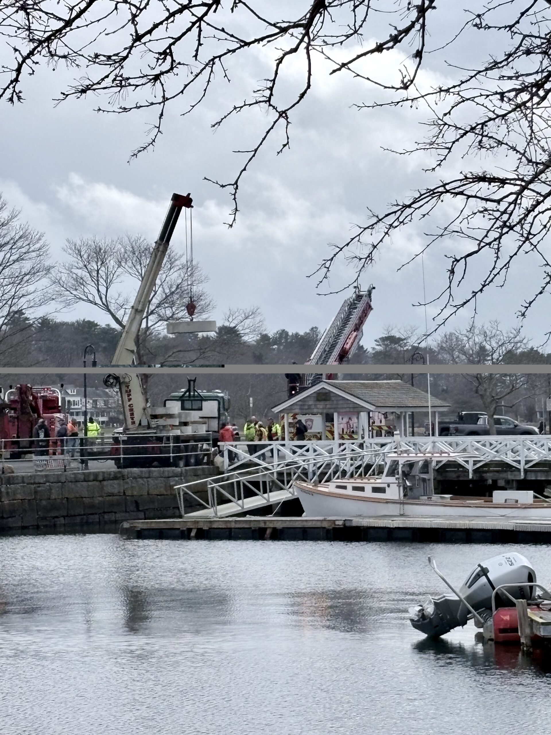 Tuesday, April 7, 2026 – A truck unloading a mooring block at Morss Pier in Masconomo Park broke down on Tuesday afternoon with the block…